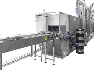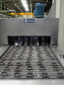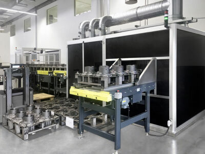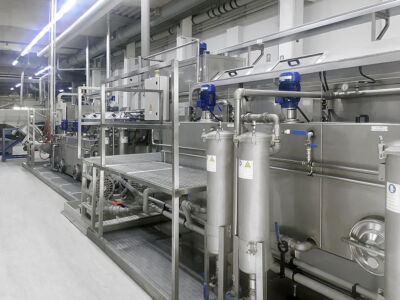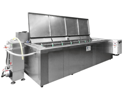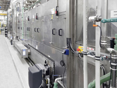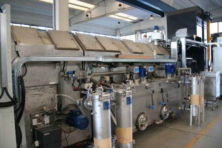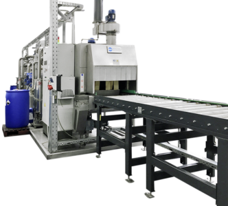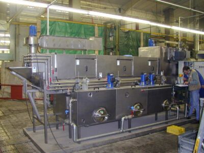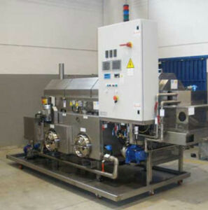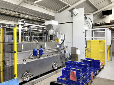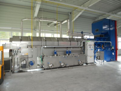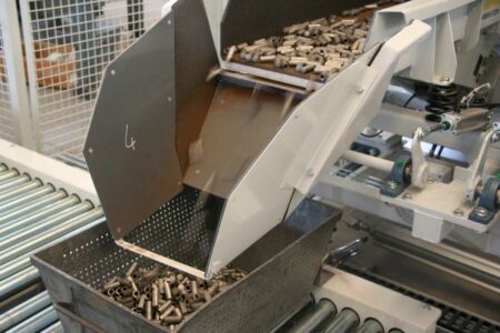 Eine horizontale Verschiebeeinheit vor der Kammerwaschanlage ermöglicht die Vorbereitung der nächsten Beladung und dient als Entladefläche.